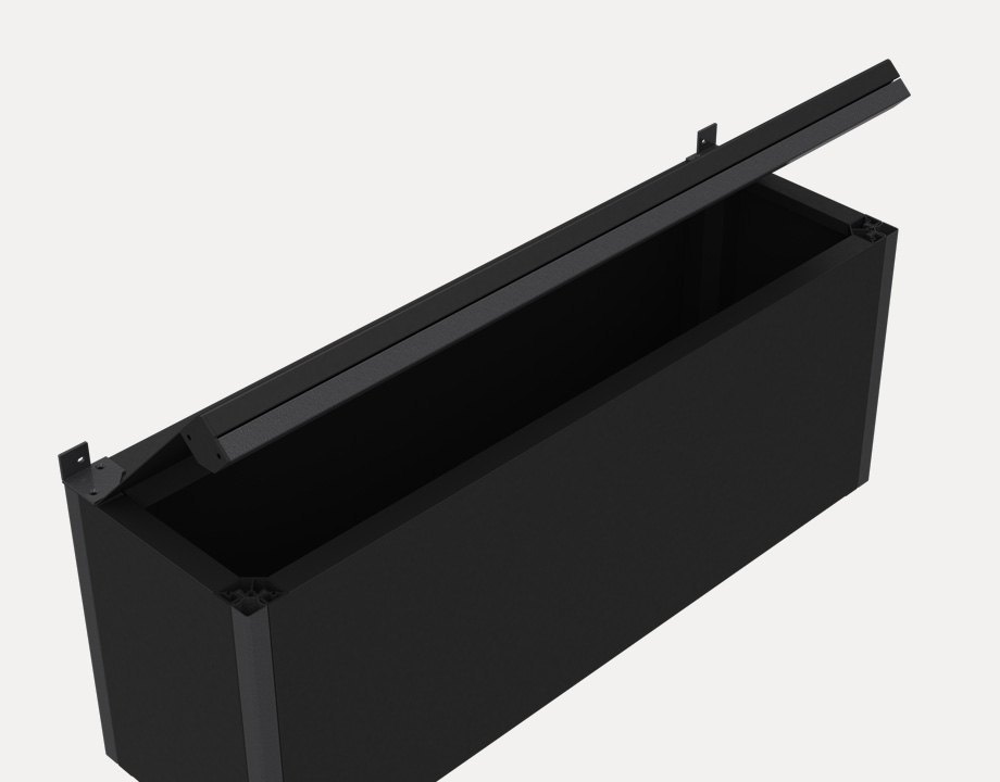 Su tapa practicable nos permite convertirlo en un cómodo asiento y mejorar así el aprovechamiento del espacio y la modulación de las mesas.